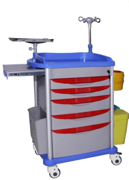 MEDICATION CART - ABS (6 BIN X 2 ROW TILT BIN & 5 HOOKS POLE)